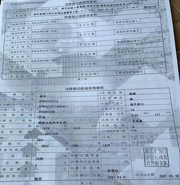 鄂H A6199輝騰WVWFD73D778小型轎車,注冊(cè)日期2007年9月,年檢到2021年9月,參考價(jià)5萬(wàn)元。